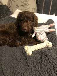 Hi Donna, I just want to let you know Hattie is doing great, she’s settled in very well. We tried her in a pen at night time, it took her two nights to figure out how to escape it and come up the stairs to bed lol, so she’s a clever little one. She’s been great around my nieces and nephews, even watching pepper pig on the iPad sitting on my 5 year old nephews lap! She’s absolutely amazing and is loved and spoilt already. It’s very clear she has come from a great home, so I just wanted to say thank you for such an amazing dog xx